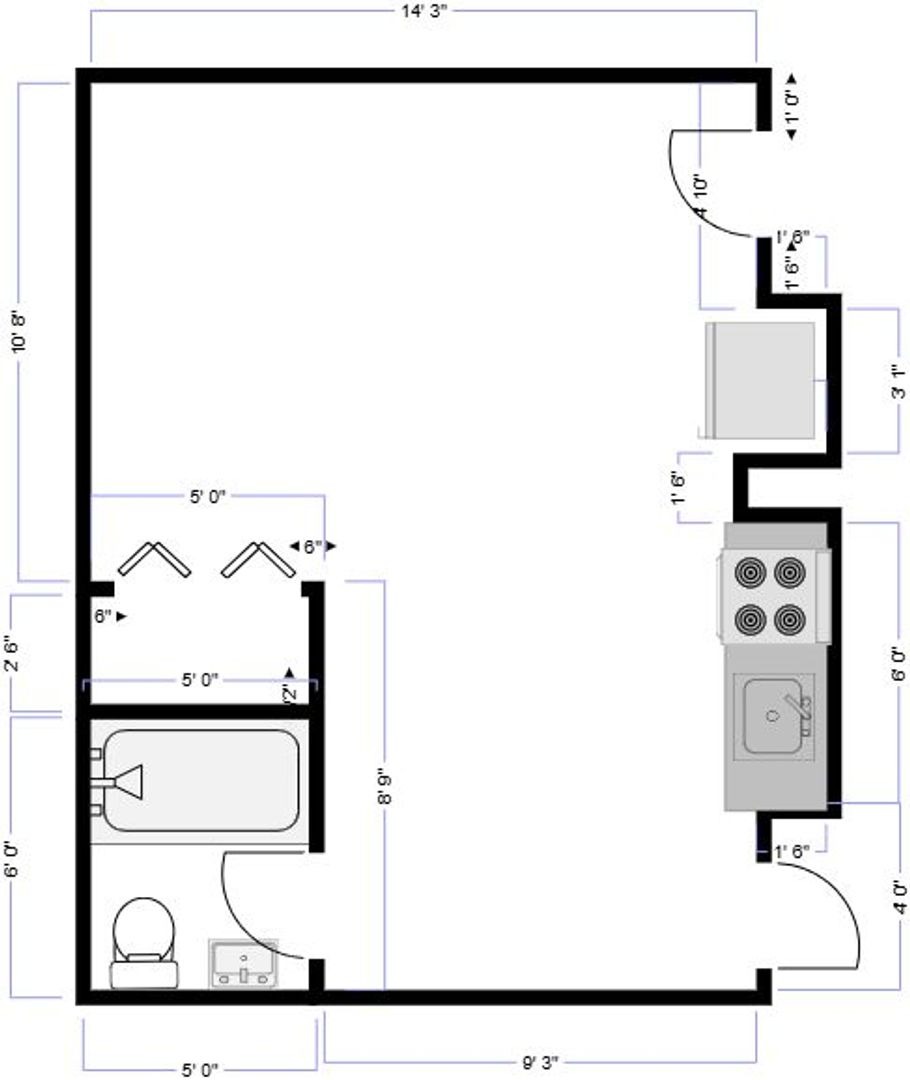 Unique Garden Style Studio with kitchen, and full bathroom.