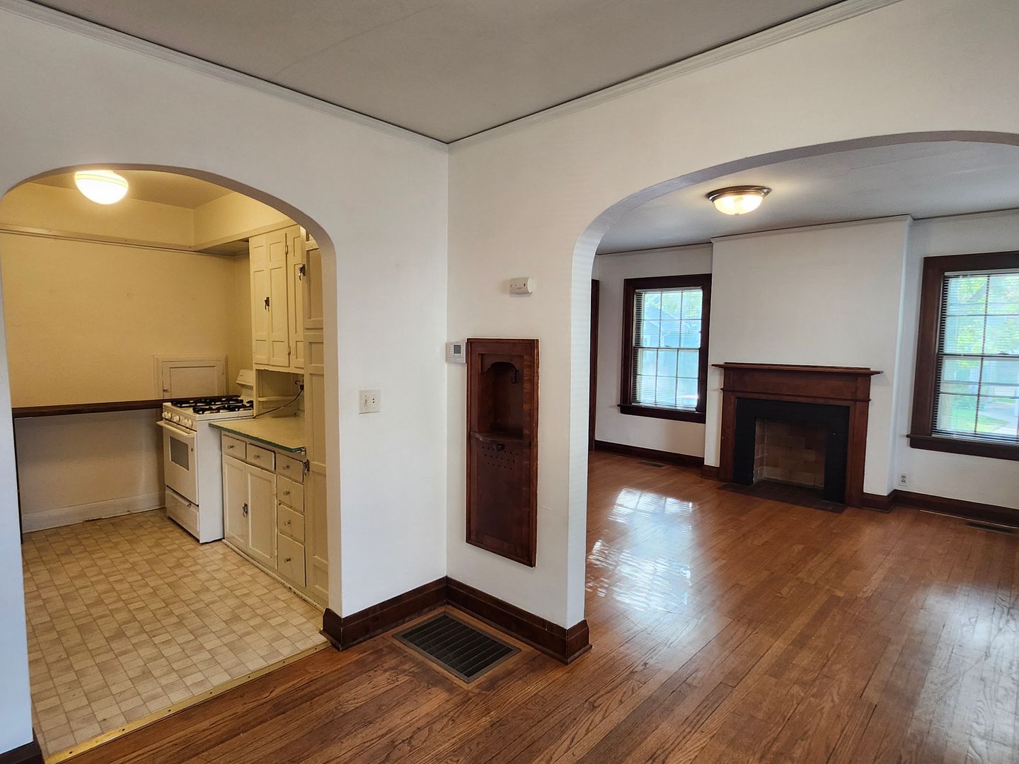 Spacious unit with hardwoods, many tall windows and a/c.