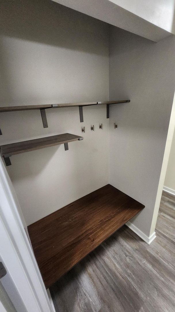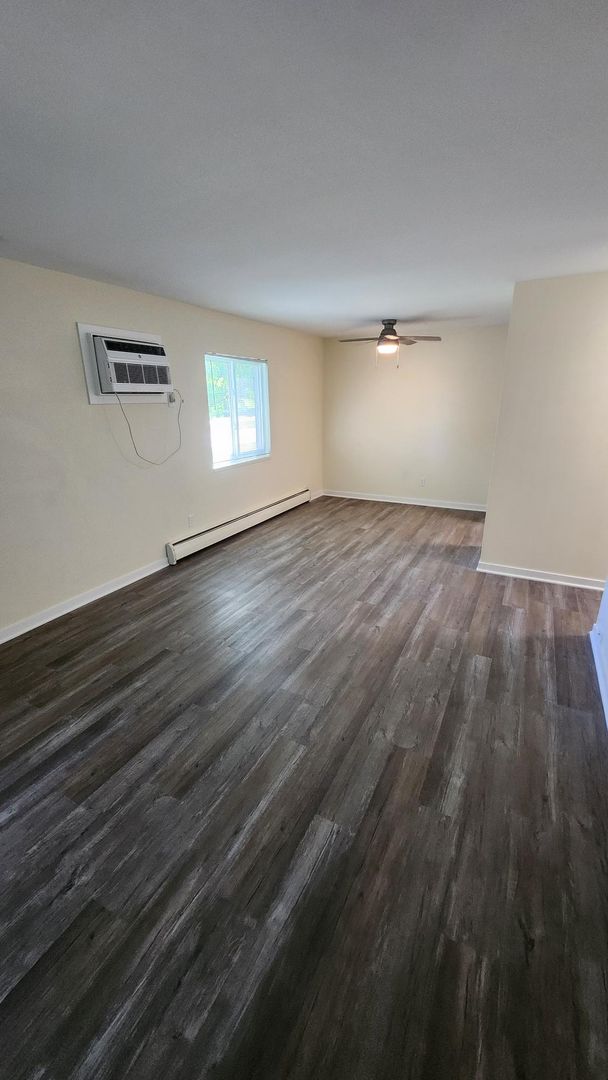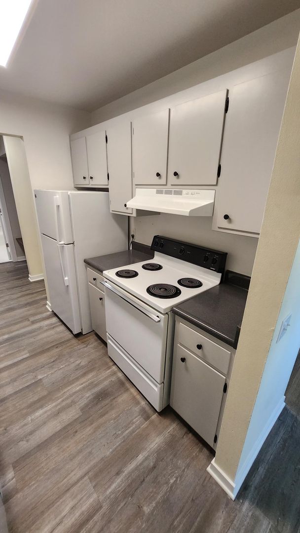 Vinyl plank flooring throughout kitchen and living room and in bedrooms.